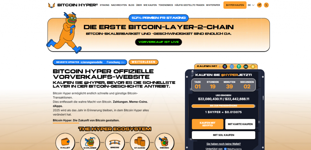 Bitcoin Hyper knackt 22 Millionen US-Dollar!